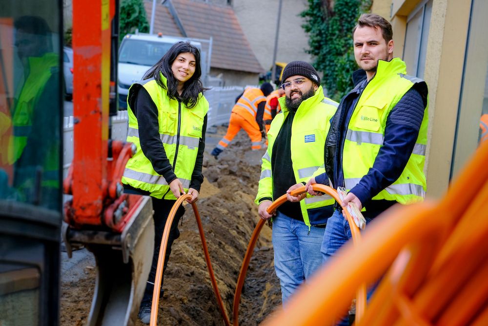 Ein internationales Team von Bauarbeitern verlegt die Leerrohre in der Gemeinde - bis Ostern wollen sie fertig sein.